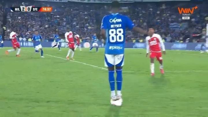 内瑟尔-比利亚雷亚尔在场上可边可中,他在今年的南美U20锦标赛中表现出色,8球4助夺得金靴。百万富翁对阵圣菲独立的这场比赛气氛火爆,内瑟尔还因为双脚踩球的花哨动作而被裁判出示了黄牌,双方差点爆发冲突。